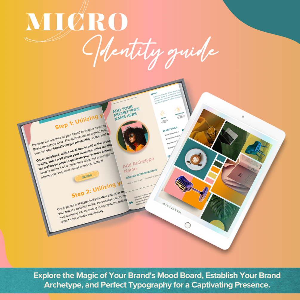 Create an unforgettable brand identity with our all-inclusive package. This kit reflects a world of vibrant emotions with a beautiful color palette and a thoughtfully designed mood board. Discover your brand archetype through an engaging quiz and ensure a consistent and captivating brand voice with meticulously curated typography. Elevate your brand presence with a package that seamlessly blends creativity, authenticity, and cohesion, telling your unique story in a way that leaves a lasting impression.